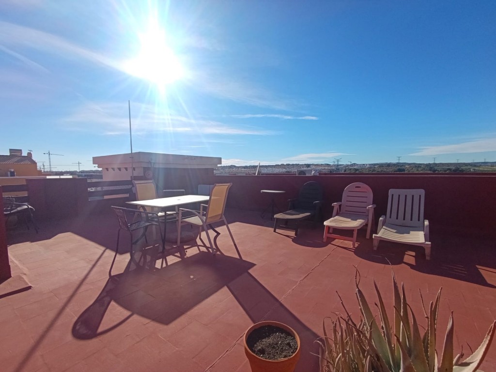 Cash buyer only no mortgages Watch the video linked for more exciting details about this delightful property! We present to you a charming, fully furnished, spacious upper-floor apartment, featuring a large breakfast terrace and a roof solarium with scenic views to enjoy year-round. This property also offers access to two community pool areas, perfect for relaxation and leisure. Ideally located, it's just a 5-minute walk to local supermarkets, parks, bars, and restaurants, or to the bustling Via Park 3 commercial center. You're only a 10-minute drive to the vibrant La Zenia Boulevard shopping center and the stunning beaches of Playa Flamenca, Punta Prima, La Zenia, and Cabo Roig. Plus, Villamartin Plaza and the golf course are just a 5-minute drive away. This property is the perfect combination of comfort, convenience, and coastal charm!