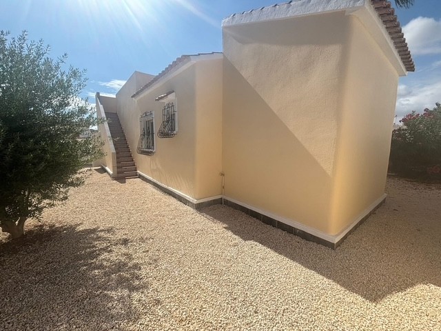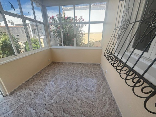 We present to you a lovely unfurnished one level villa in a quiet cul de sac with roof soalrium and community pool area to enjoy. This property is in a good location , just a short walk to local shops, bars and restruants, parks and green walking zones. Only a 5 minutes drive to Playa Flamenca beach or to La Zenia boulevard shopping center.