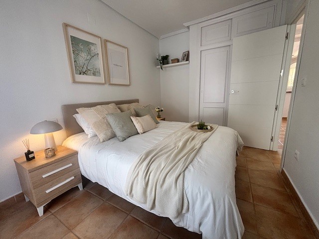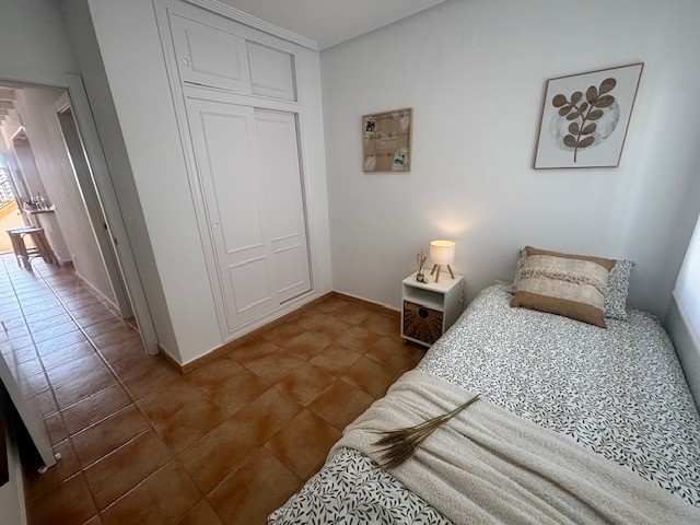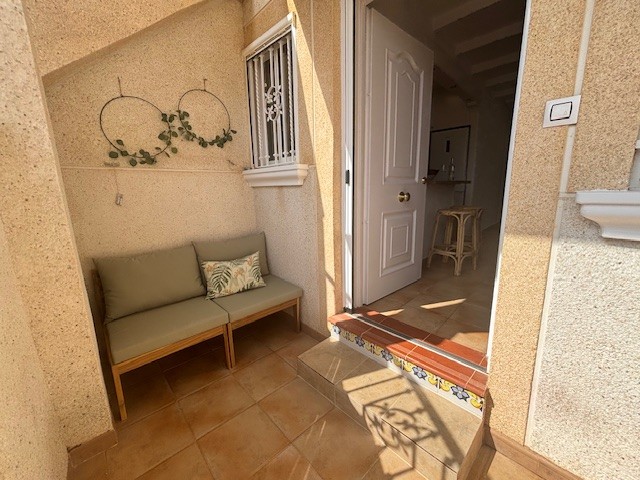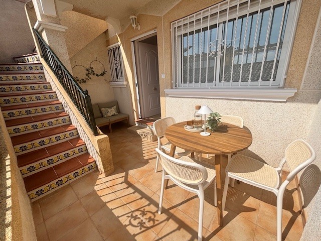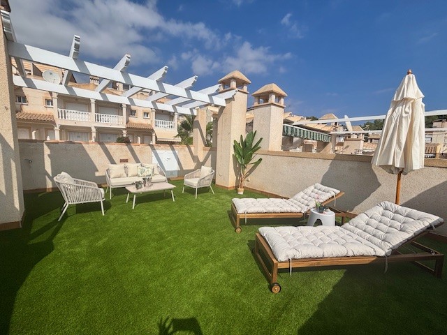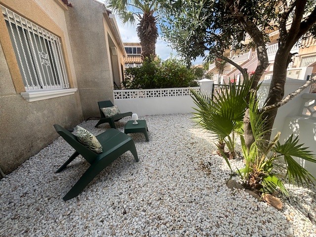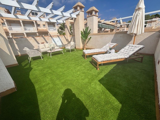 We present to you a lovely house with sun terrace, patio garden and roof garden to enjoy in a quiet location, ideally for relaxing and enjoying the sun. This property is fully furnished, modern and contempoary interior. just a minutes walk to the well maintained community pool area. Just a 10 minutes walk to bars and restruants, a 10 minutes drive toLa Zenia boulevard shopping center or to the beautiful beaches on the coast. Only a 5 minutes drive to the golf course.