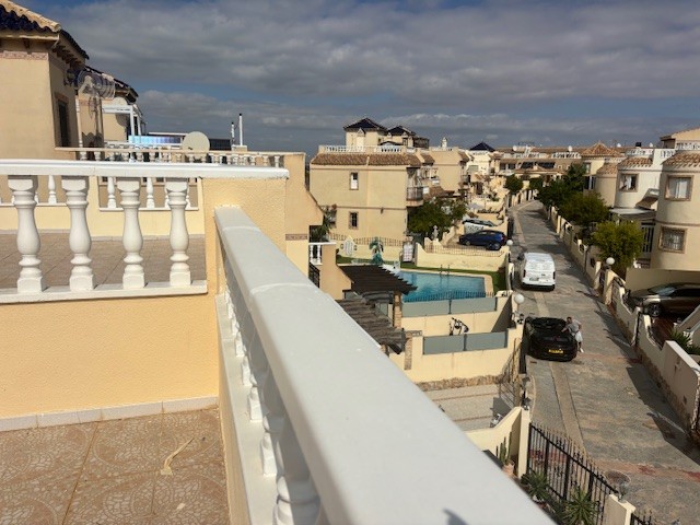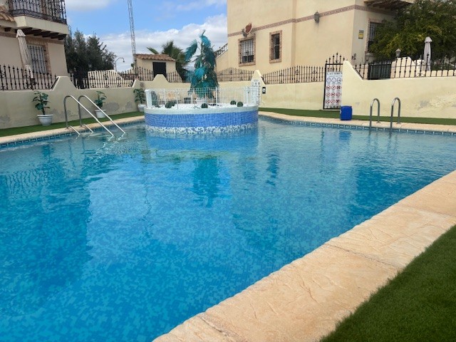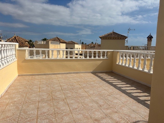 We present to you an unfurished house in a gated complex with ample parking and patio garden to the front and to the rear as well as balcony. Situated in a quiet road, close to shops, bars, restruants and parks.Only a 10 minuttes walk to the populat Playa Flamenca Saturday market and 25 minues walk to La Zenia boulevard shopping center. Only a 5 minutes drive to VIllamartin golf course or to the white sandy beaches on the coast.