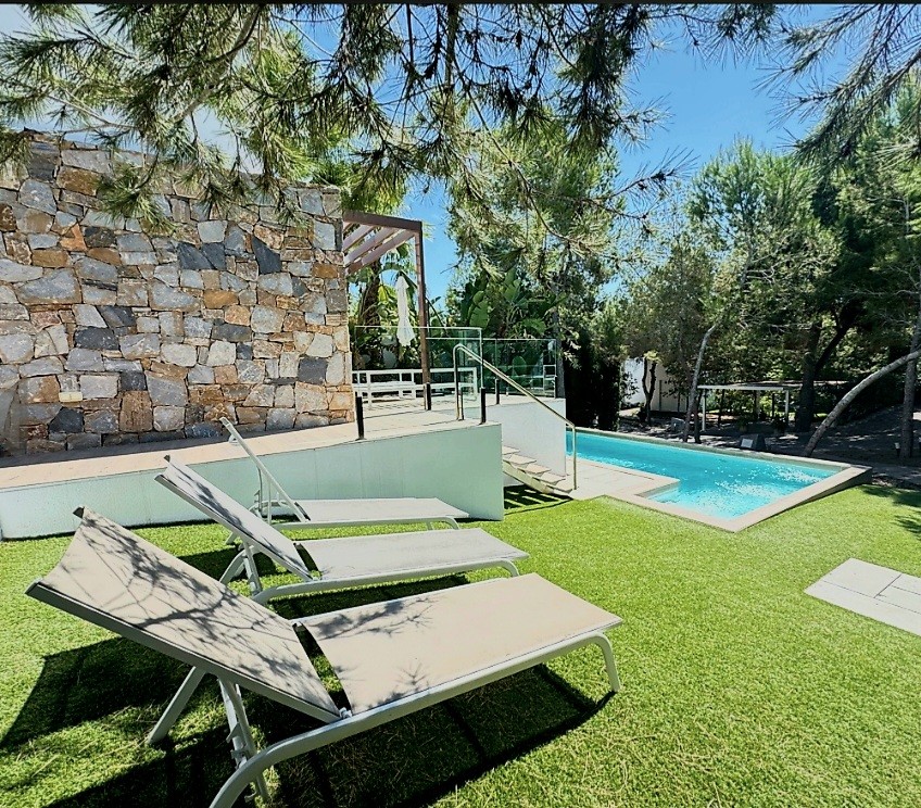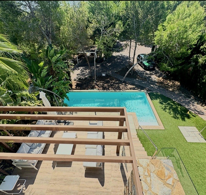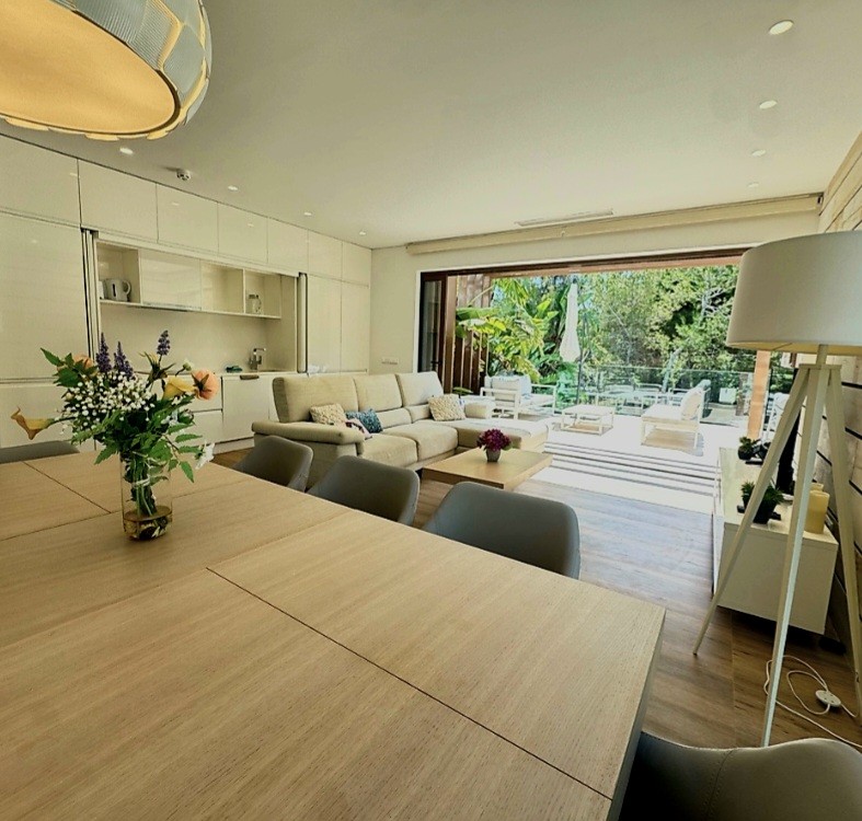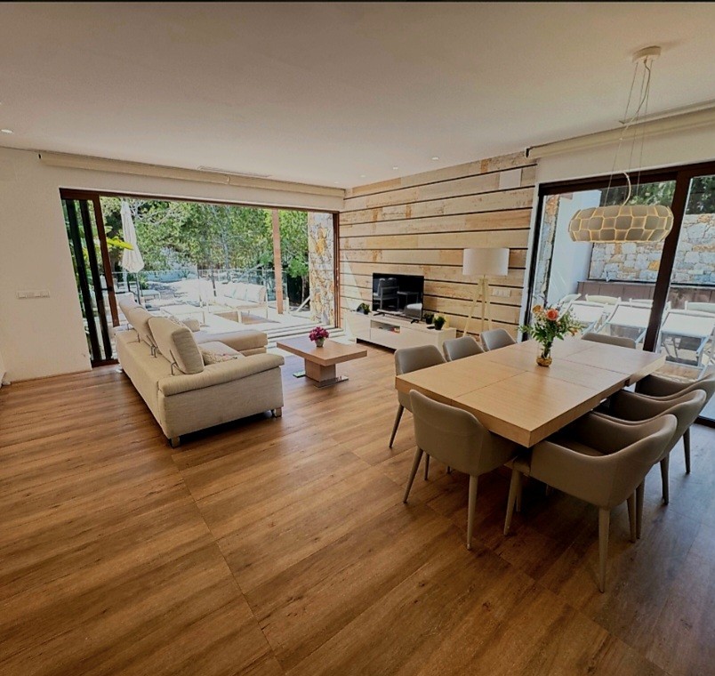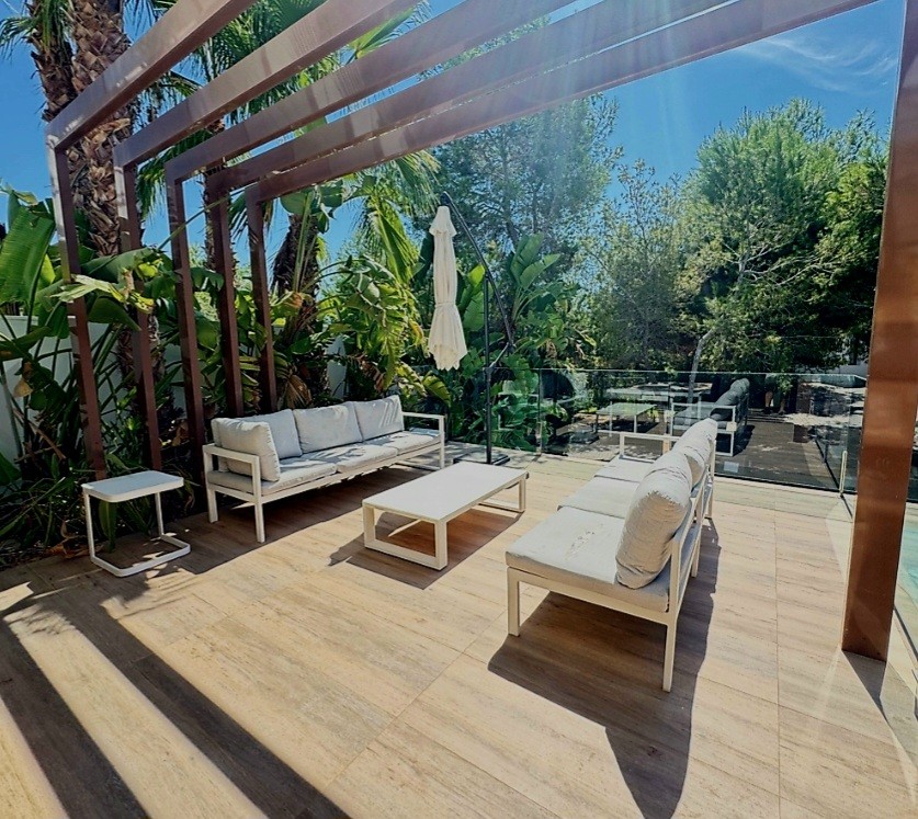 The property offers a modern open-plan kitchen with high-end appliances, multiple terraces with a BBQ area, and a private swimming pool surrounded by beautifully landscaped gardens. Each of the four double bedrooms is bright and spacious, while the bathrooms are sleek and contemporary. The villa also includes a guest WC and generous outdoor space perfect for entertaining or relaxation.