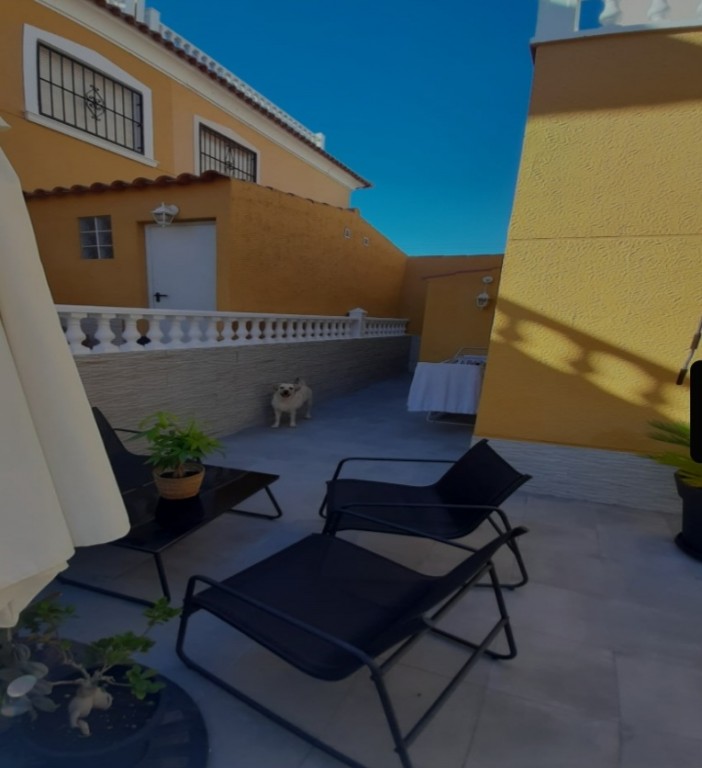 €297,000 EURO Beautifully renovated corner duplex located in a private gated residential complex in Playa Flamenca, Orihuela Costa, offering excellent community facilities including a swimming pool and landscaped green areas. This spacious property boasts a total of 167m² built and 117m² usable area, distributed over two levels. The ground floor features a large and bright living-dining room, a fully independent kitchen with adjoining utility gallery, a barbecue area, one double bedroom, and a complete bathroomperfect for guests or for those seeking single-level convenience. Upstairs, there are two additional bedrooms and another full bathroom, both designed with comfort and practicality in mind. Every room in the house is equipped with air conditioning for year-round comfort. The home also benefits from generous outdoor space, ideal for entertaining, relaxing, or enjoying the Mediterranean climate. Sold unfurnished, this property is in impeccable condition, making it ideal as a permanent residence or a high-quality holiday home. Annual costs are very reasonable, with an IBI tax of €255 and community fees of €500 per year. Perfectly situated close to all amenities including shops, restaurants, and beaches, this is a fantastic opportunity to own a modern, move-in-ready home in one of Orihuela Costa's most sought-after areas.