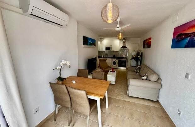 This charming south-facing ground floor apartment is located in the popular Lago Jardín urbanisation in Los Balcones. Fully furnished and ready to move into, it offers a bright and comfortable living space ideal for holidays, permanent living, or rental investment. The property features a sunny private terrace overlooking the community gardens, a spacious living and dining area with air conditioning and ceiling fans, an open-plan kitchen complete with appliances, a double bedroom with fitted wardrobes, and a well-maintained bathroom. Residents can enjoy access to a beautiful communal swimming pool, landscaped gardens, and tennis courts, creating a relaxing and active lifestyle. Conveniently situated close to all amenities, including supermarkets, shops, restaurants, and public transport, the apartment is just a 20-minute walk to the beaches of Punta Prima and a short drive to La Zenia Boulevard, Villamartin Plaza, and several golf courses. Community fees are approximately €350 per year, with Suma around €160 per year. Alicante Airport is only a 45-minute drive away, making this a perfect coastal getaway or investment opportunity.