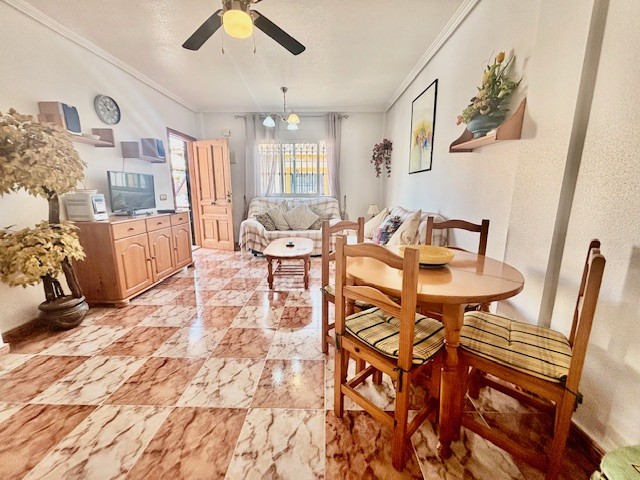 We present to you a fully furnished 2 bedrrom 1 bathroom property in a gated complex, with off road parking , patio garden, breakfast terrace and community pool to enjoy. Ideal location to live or to spend your holidays. Just a 5 minutes walk to the popular Saturday market and to a variety of shops, bars and restruants. Less than a 20 minutes walk to La Zenia boulevard shopping center. Only a short drive to the beautiful beaches on the coast.