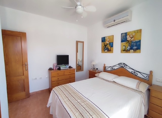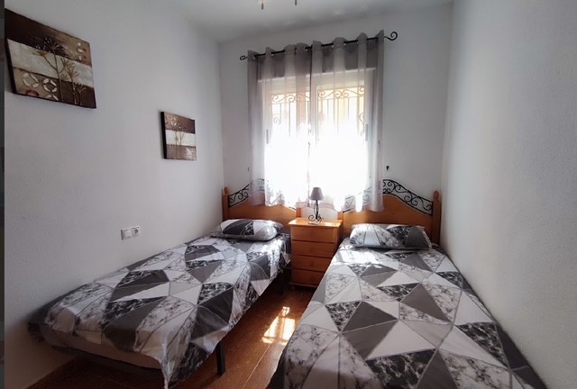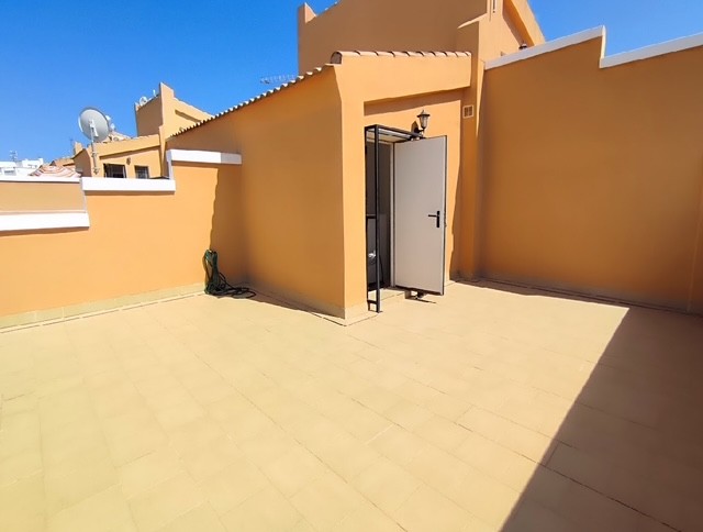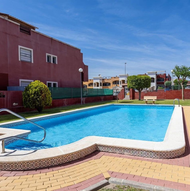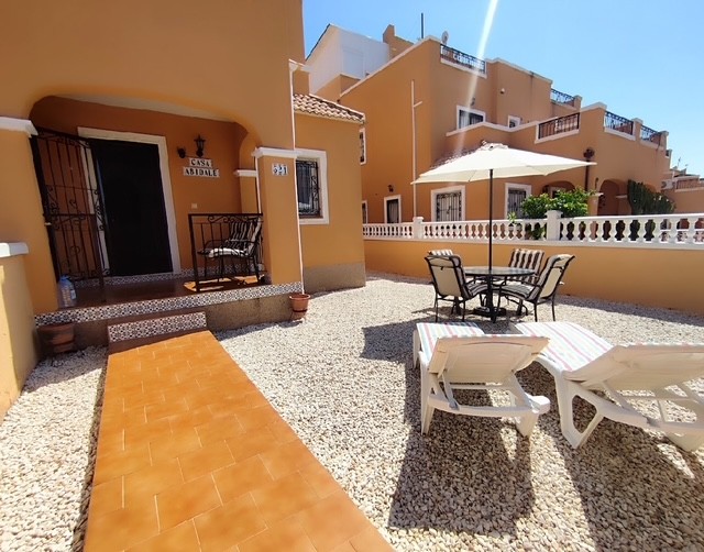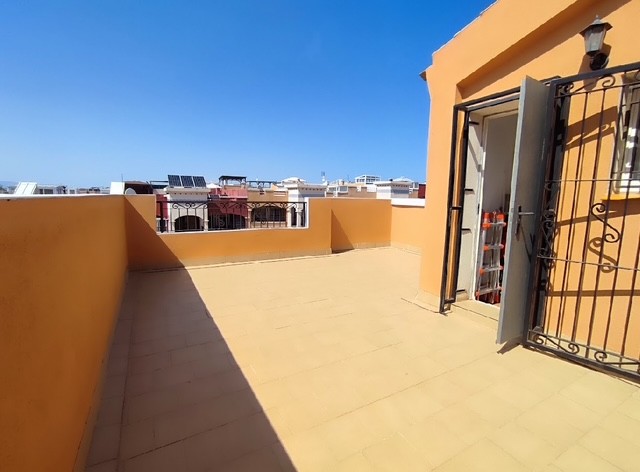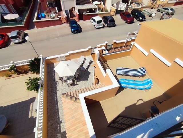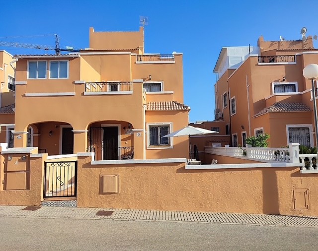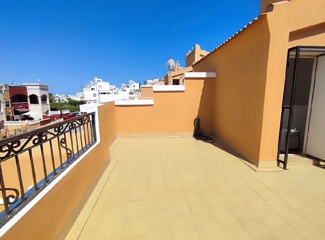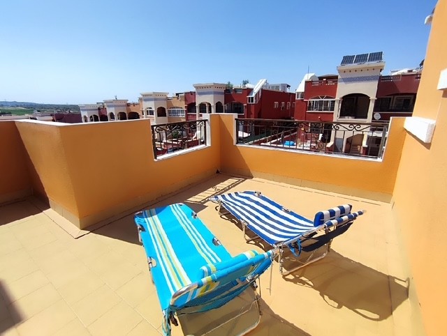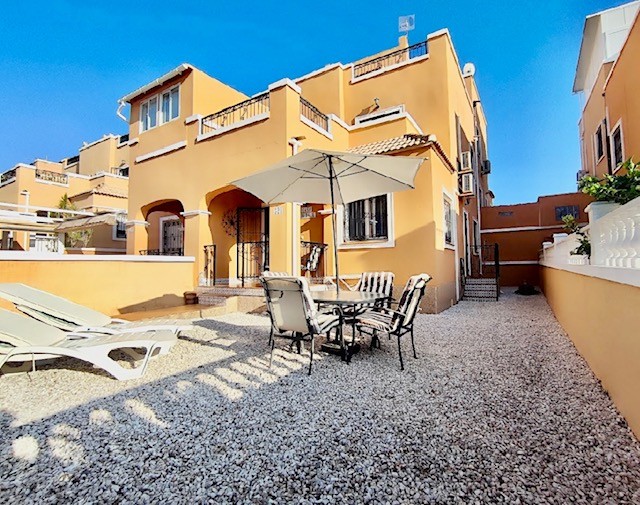 We present to you a large fully furnished quad villa to enjoy, plenty of outside space, patio garden, sun terraces and roof solarium with amazing views. Ideal location to live or to spend your holidays. There are a choice of 2 well maintained community pools with gardens, located in a quiet road, just a 5 minutes walk to local shops, supeermarkets, bars and restruants as well as parks and green walking areas. Only a 10 minutes walk to popular Via park 5 commercial center where you can find all year around entertainment. Less than a 10 minutes drive to La Zenia boulevard shopping center or to the beautiful beaches of Playa Flamenca. Only a short drive to Villamartin Plaza or to the 18 hole golf courses. Close to a bus service that takes you into Torrevieja.