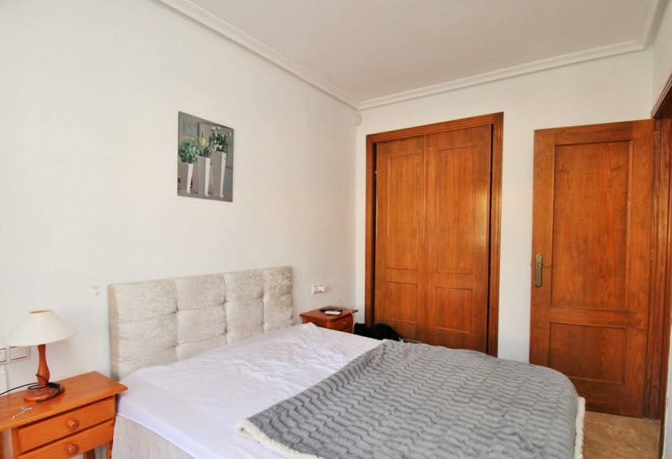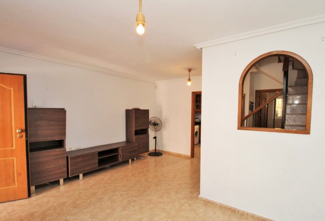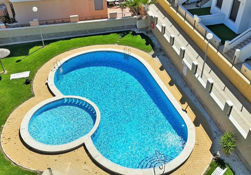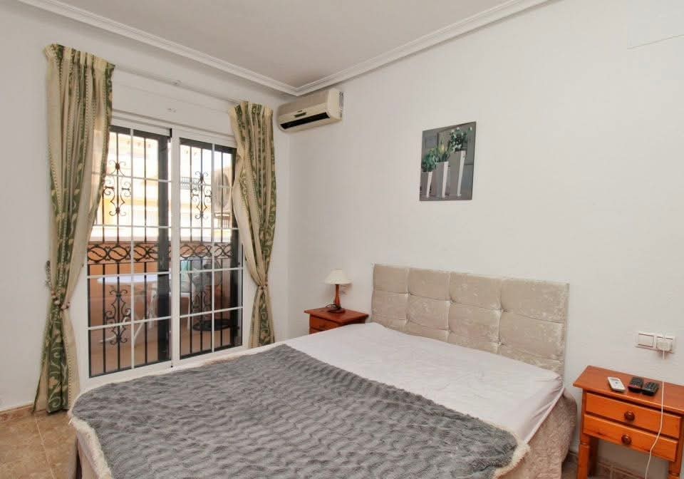 Introducing this charming 3-bedroom, 2-bathroom house located in the sought-after area of Villamartin, Orihuela Costa. This well-presented property offers a perfect combination of comfort, space, and Mediterranean living. The home features a bright and spacious living room, a separate fully equipped kitchen with appliances, and a convenient WC on the ground floor. Upstairs, you’ll find two double bedrooms with fitted wardrobes, including a master bedroom with access to a private sun terrace. The property also boasts a sunny roof solarium ideal for relaxing or entertaining, as well as a patio garden and private driveway. Partly furnished and equipped with air conditioning, this home is move-in ready and offers both practicality and charm. Situated within a well-maintained gated community, residents can enjoy beautifully kept gardens and a communal swimming pool. Ideally located close to all amenities, including shops, restaurants, and parks, and just a 5-minute drive to the stunning cove beaches, La Zenia Boulevard shopping centre, and several golf courses. Alicante Airport is only 45 minutes away, making this property ideal for full-time living, holidays, or investment.
