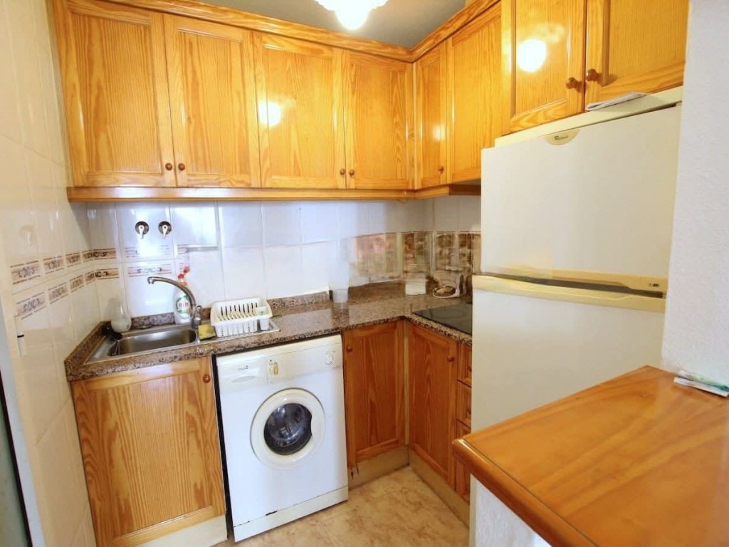 This charming bungalow apartment, priced at €135,000, offers two bedrooms, one bathroom, a private roof solarium, patio garden, and its own driveway, along with access to a well-maintained community pool and gardens. Located in the peaceful area of Los Altos, the property comes fully furnished and equipped, featuring air conditioning, ceiling fans, a spacious living room, an open-plan kitchen with appliances, a glazed breakfast terrace, and fitted wardrobes in the double bedroom. Its excellent location provides walking-distance access to supermarkets, shops, bars, restaurants, and parks, as well as nearby bus services that connect directly to Torrevieja town centre and the marina. Just a short drive from the beaches of Punta Prima, La Zenia Boulevard, Villamartin Plaza, and local golf courses, this home is ideal as a holiday property or rental investment. Community fee: €260 per year. Suma: €160 per year. A secure buy-online service is available for those wishing to reserve or purchase remotely. Located 45 minutes from Alicante Airport. Book a viewing: 0034 602 638 985