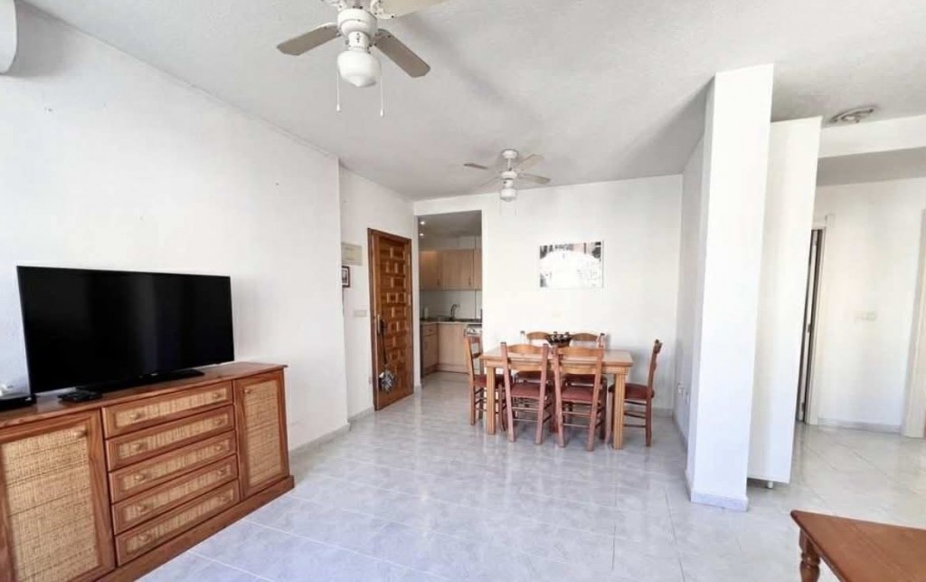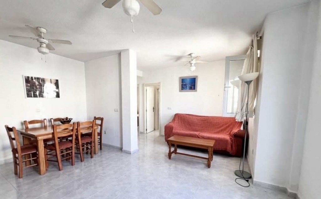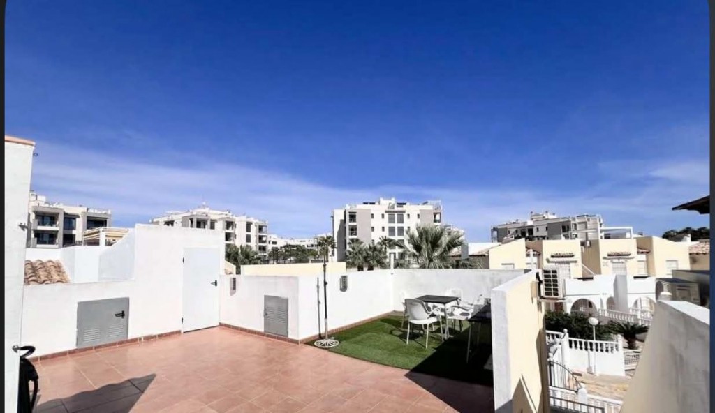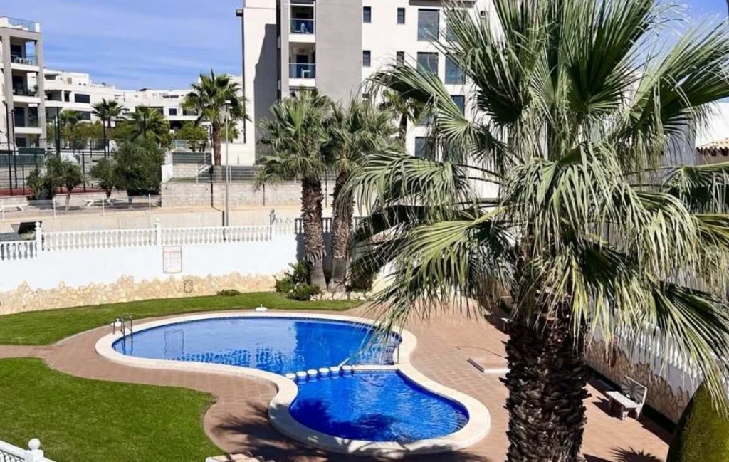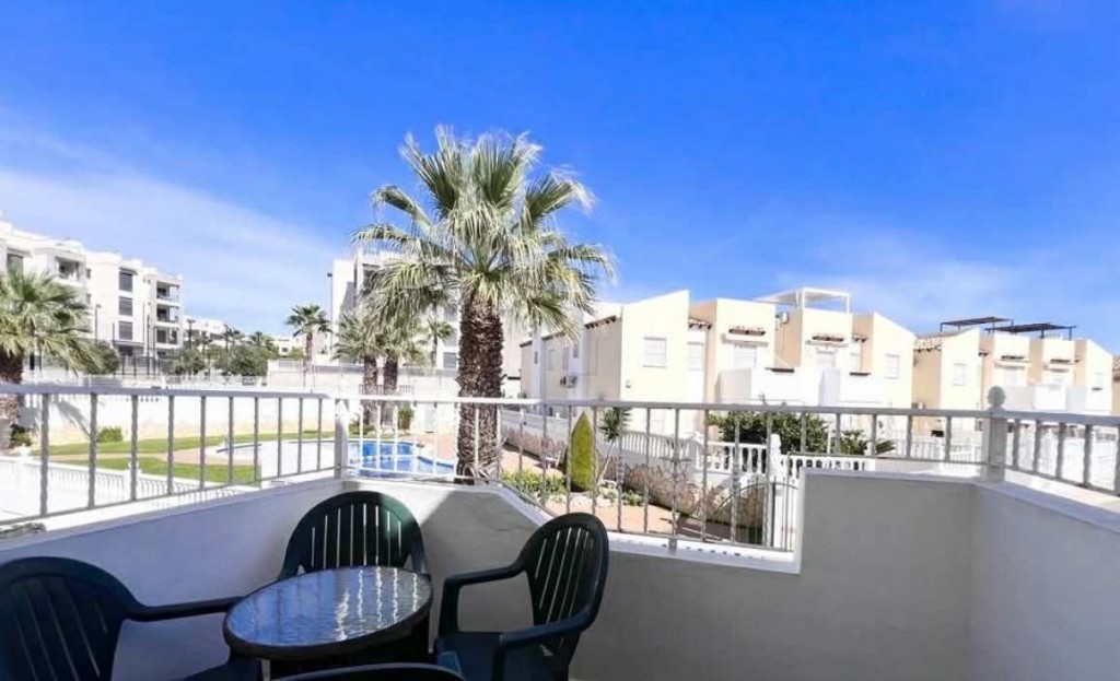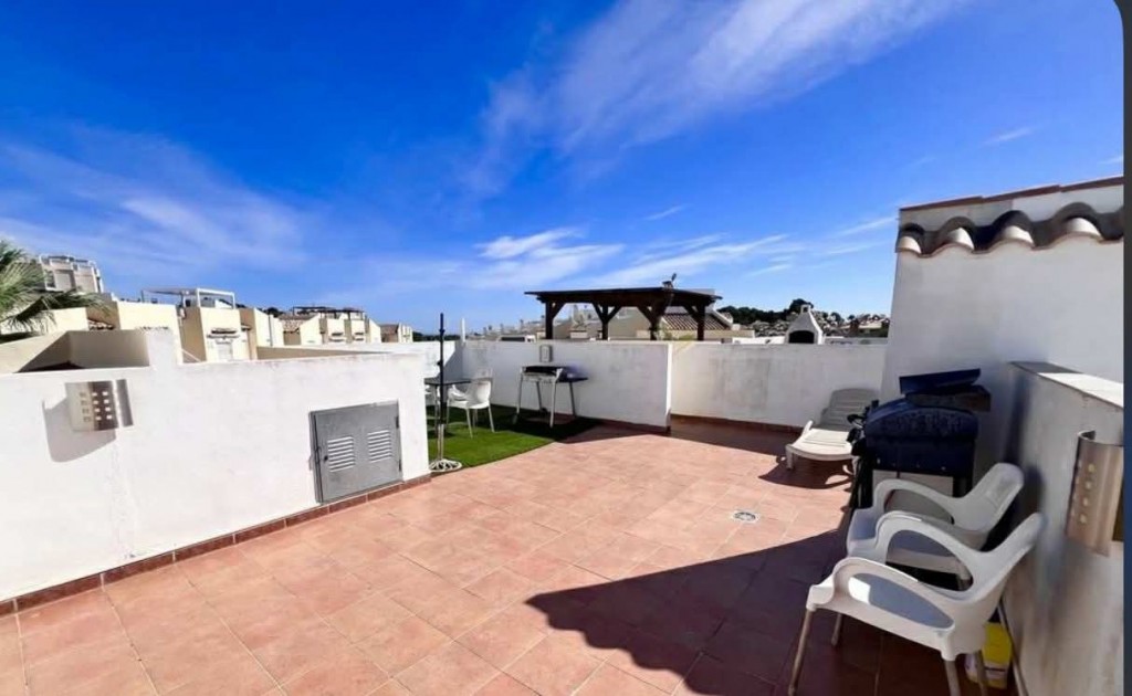 Priced at €149,900, this attractive upper-floor apartment offers two bedrooms and two bathrooms, with lovely pool views, a sun terrace, and a private roof solarium, all set within a secure gated complex in the sought-after Panorama Golf area of Villamartin, Orihuela Costa. The property is fully furnished and features a bright living room, a separate fully equipped kitchen, air conditioning, ceiling fans, and two generously sized bedrooms with fitted wardrobes. Off-road parking is included, and residents can enjoy beautifully maintained community pool and garden areas. The location is ideal, just a ten-minute walk from the vibrant Villamartin Plaza with its shops, bars, restaurants, and year-round entertainment, and less than a ten-minute drive to La Zenia Boulevard, nearby beaches, and golf courses. Community fee: €380 per year. Suma: €220 per year.