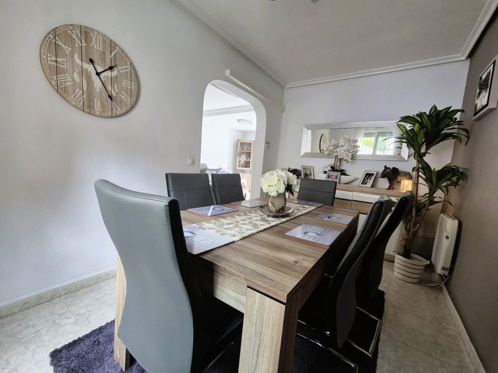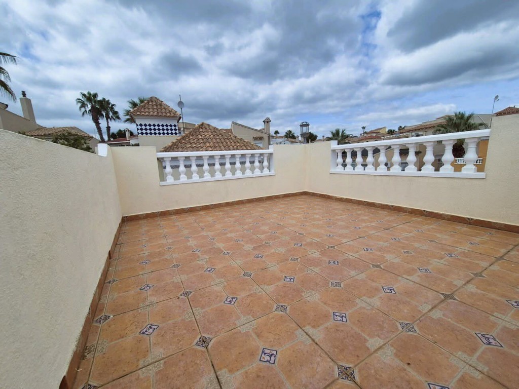 €269,900 – We present to you a lovely 3 bedroom, 2 bathroom detached villa situated in the popular area of El Galan, Villamartín, Orihuela Costa. This well-presented villa offers 100m² built on a 120m² plot with room for a splash pool, a patio garden to enjoy, jacuzzi, roof terrace with scenic views and off-road parking. The property is partly furnished and benefits from air conditioning and ceiling fans throughout, a spacious living room with dining area leading out to the terrace, an open plan kitchen fully equipped with appliances, a separate utility room, a ground floor bedroom and shower room, a master bedroom with sun terrace, a double bedroom with fitted wardrobes and a further shower room. Ideally located just a 5 minute walk to local shops, bars and restaurants, around a 20 minute walk to Villamartín Plaza or La Fuente Commercial Centre with year-round entertainment, only an 8 minute drive to the white sandy beaches of La Zenia, Cabo Roig and Campoamor, a short drive to the golf courses, no community fees, SUMA €530 pa and just a 45 minute drive from Alicante Airport.