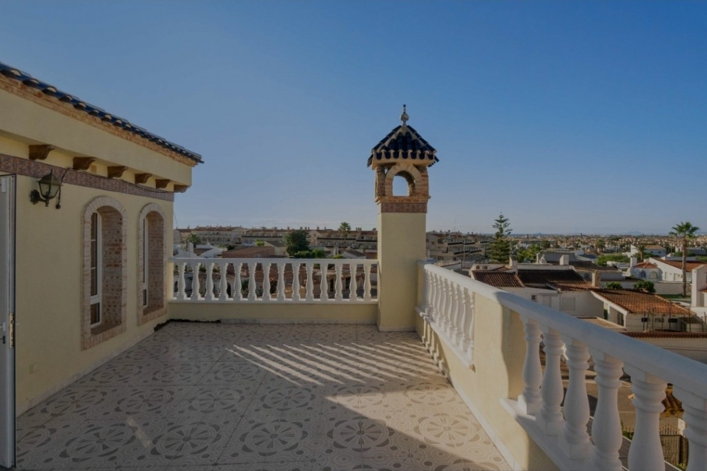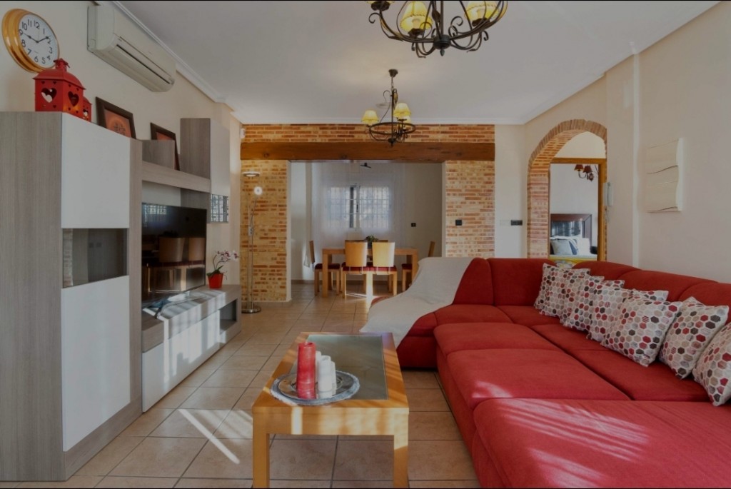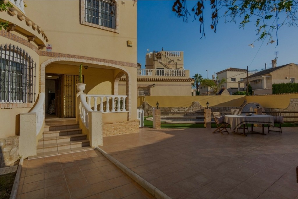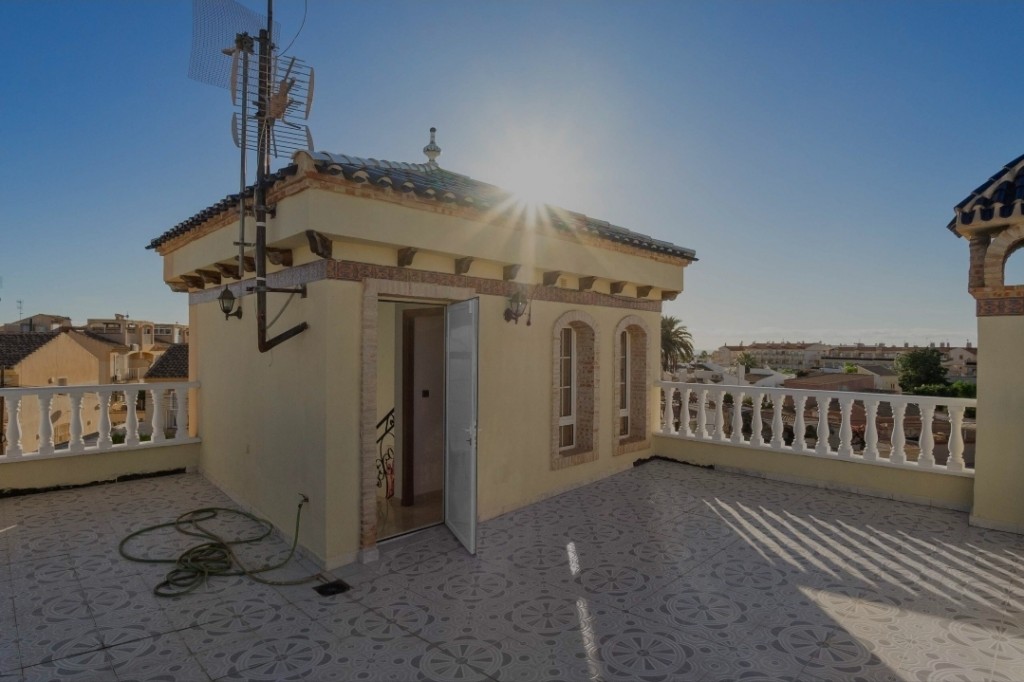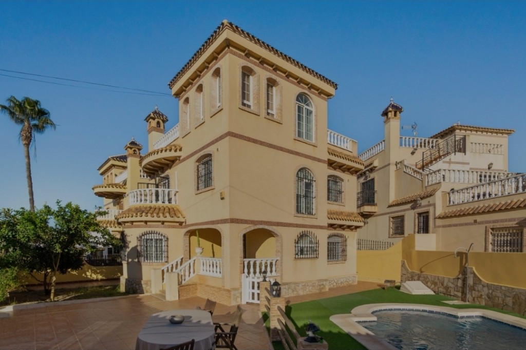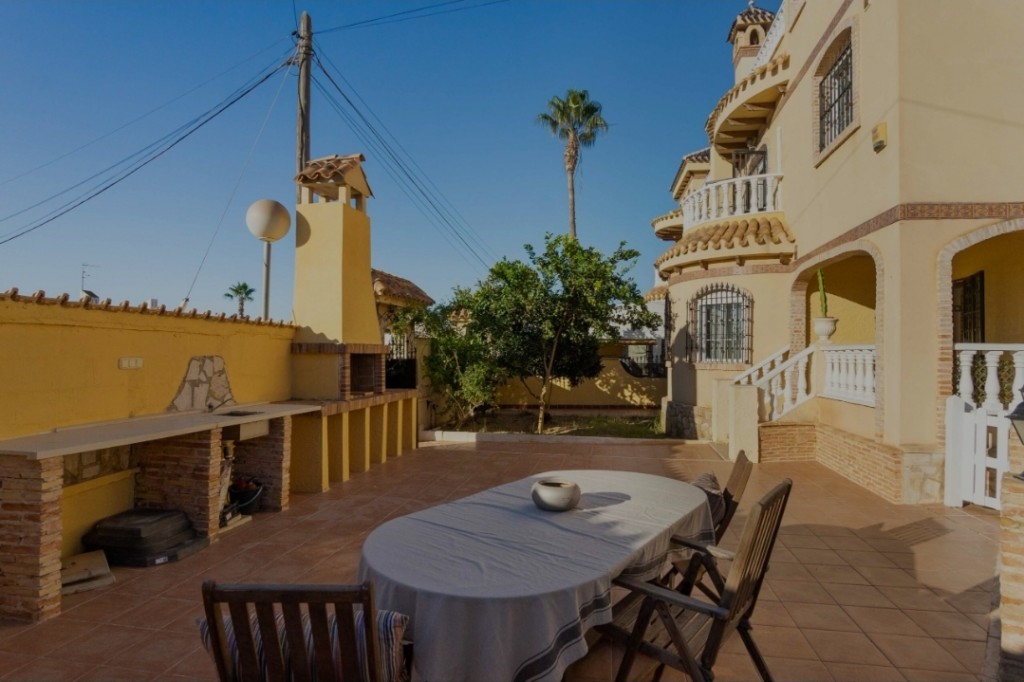 We present to you a spacious and beautifully maintained five bedroom, three bathroom villa situated on a generous 306 m² plot in the sought-after area of La Florida, Playa Flamenca, Orihuela Costa, just 3 km from the stunning Mediterranean beaches. This impressive property offers approximately 161 m² of living space and is ready to move into, coming fully furnished and equipped for immediate enjoyment. The ground floor features a comfortable bedroom and bathroom, ideal for guests or single-level living, while the first floor offers three further bedrooms and two bathrooms, including an en-suite, and the top floor hosts a bright fifth bedroom. The villa benefits from air conditioning, fitted wardrobes, a fully equipped kitchen, pantry and laundry room, ensuring both comfort and practicality. Outside, you will find a private swimming pool, landscaped garden with trees and barbecue area, multiple terraces, a sun-drenched solarium and off-road parking, creating the perfect environment for outdoor living and entertaining. Located close to shopping centres, supermarkets, parks, hospitals and children’s play areas, this home is ideal for permanent living, holidays or rental investment, with low community fees of just €402 per year. A fantastic opportunity to enjoy space, privacy and Mediterranean lifestyle in a prime Orihuela Costa location.