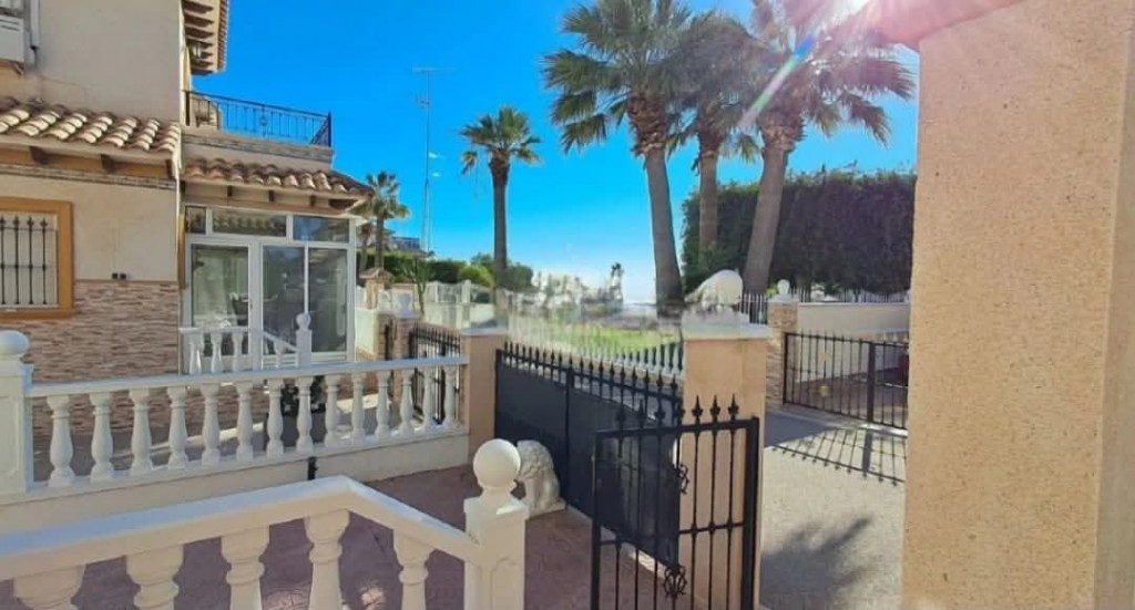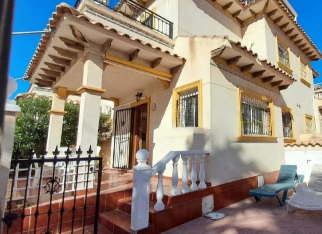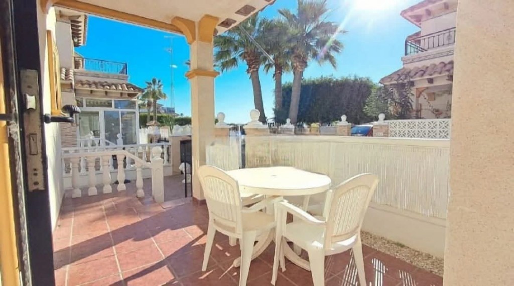 €219,000 EURO. We present to you a lovely fully furnished south facing 2 bedroom, 2 bathroom detached villa with patio garden, sun drenched roof solarium with guest room, driveway and beautiful community pool and coastal views, situated in a well maintained gated complex in Playa Flamenca, Orihuela Costa. The property offers a bright and spacious living room, open plan kitchen with appliances, a ground floor WC, two double bedrooms with fitted wardrobes, a bathroom, a breakfast terrace and a fantastic roof solarium with guest room or storage space. Ideal as a permanent home, holiday retreat or rental investment, it is just a short walk to bars and restaurants, only a 5 minute walk to Playa Flamenca Saturday market, a 10 minute walk to La Zenia ...