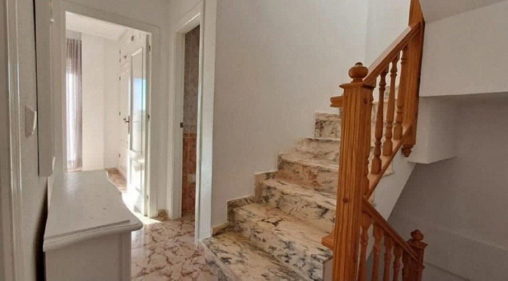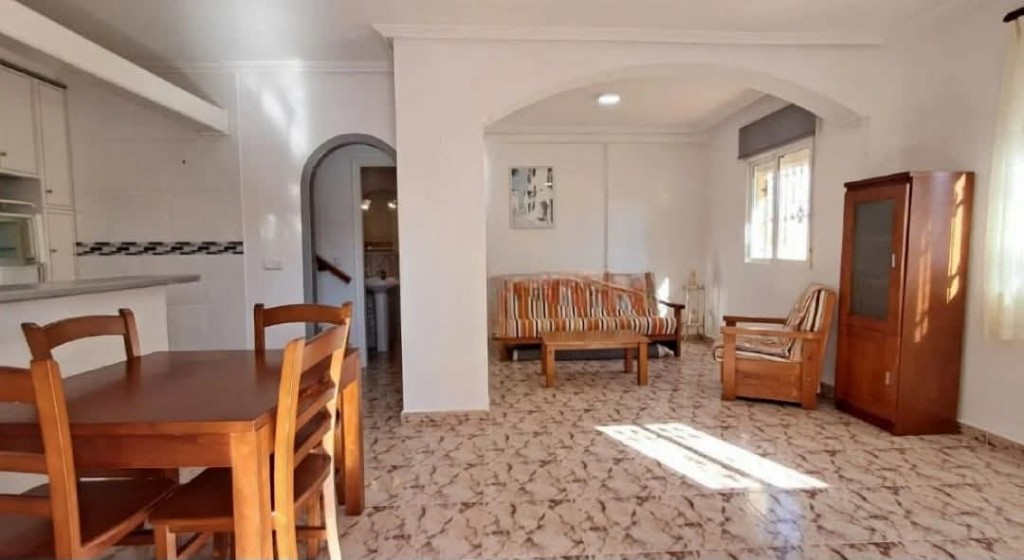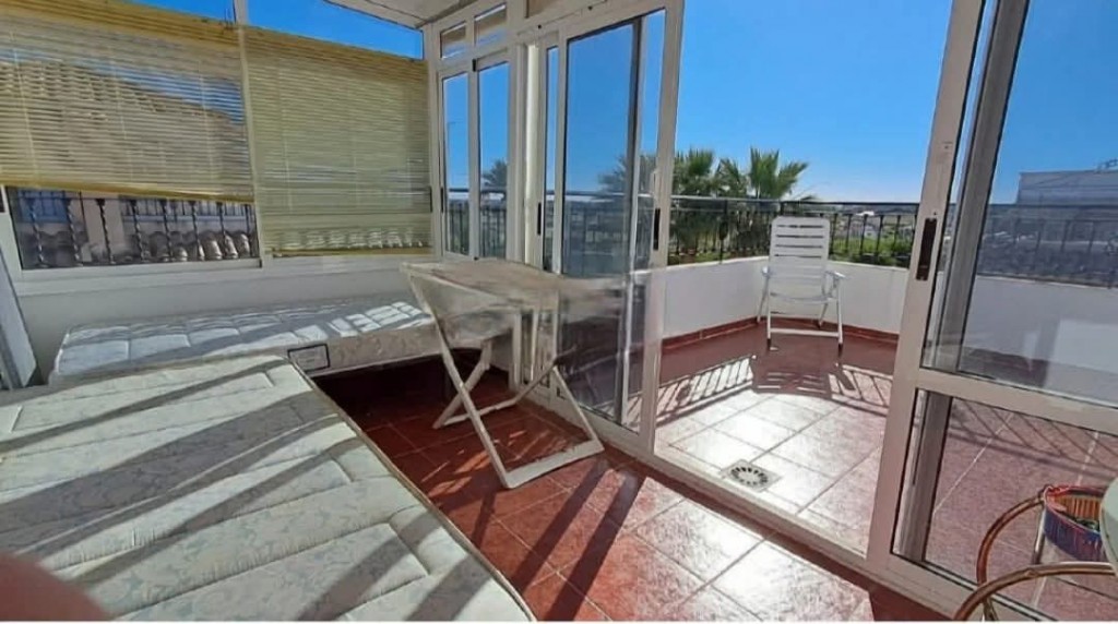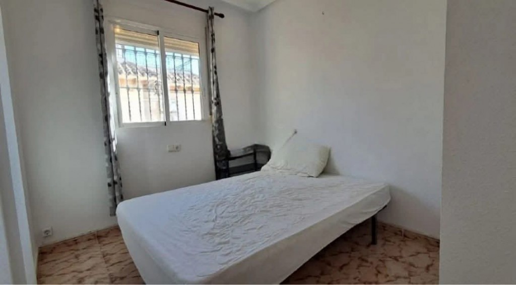 €219,000 EURO. We present to you a lovely fully furnished south facing 2 bedroom, 2 bathroom detached villa with patio garden, sun drenched roof solarium with guest room, driveway and beautiful community pool and coastal views, situated in a well maintained gated complex in Playa Flamenca, Orihuela Costa. The property offers a bright and spacious living room, open plan kitchen with appliances, a ground floor WC, two double bedrooms with fitted wardrobes, a bathroom, a breakfast terrace and a fantastic roof solarium with guest room or storage space. Ideal as a permanent home, holiday retreat or rental investment, it is just a short walk to bars and restaurants, only a 5 minute walk to Playa Flamenca Saturday market, a 10 minute walk to La Zenia Boulevard shopping centre, and less than a 10 minute drive to Villamartin Plaza and the golf course. The beautiful beaches are just a 5 minute drive or around a 20 minute walk, and Alicante Airport is approximately 45 minutes away. Community fee €360 per year and Suma fee €240 per year.