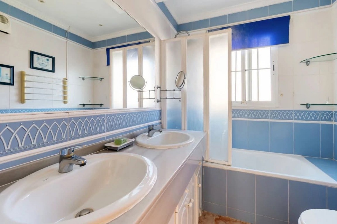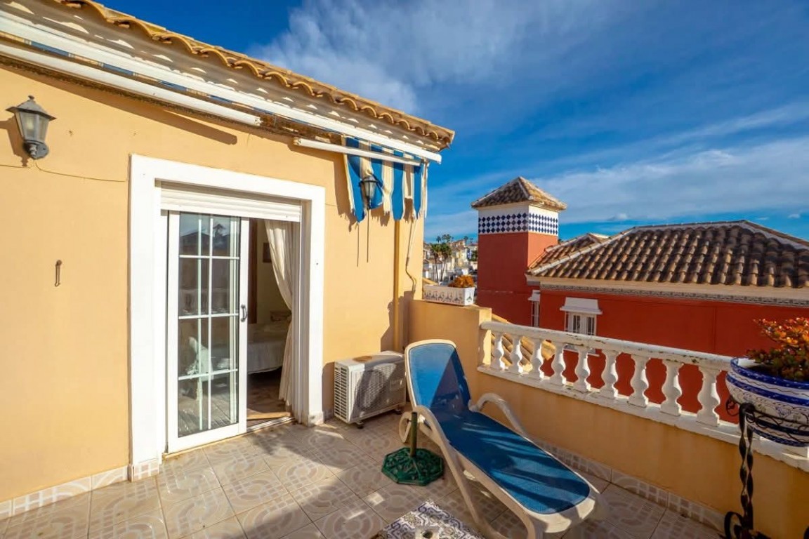 €285,000 EURO. We present to you a lovely fully furnished 3 bedroom, 2 bathroom detached villa situated in Blue Lagoon, Villamartín, Orihuela Costa. Built on a 350 m² plot with 168 m² constructed, this property features a private pool, patio garden, driveway, and a roof terrace with scenic views. The spacious living and dining area leads out to the terrace, with a separate fully equipped kitchen, a ground floor bedroom and shower room. Upstairs you will find the master bedroom with sun terrace, a double bedroom with fitted wardrobes, and an additional shower room. Located just a 10 minute walk to local shops, bars and restaurants, a 5 minute drive to Villamartin and La Fuente commercial centre, around an 8 minute drive to the beautiful beaches of La Zenia, Cabo Roig and Campoamor, and only a short drive to the golf course. Alicante Airport is approximately 45 minutes away.