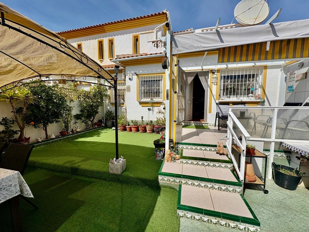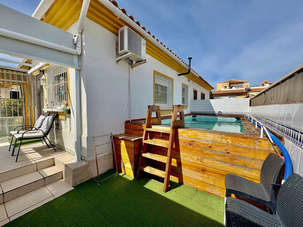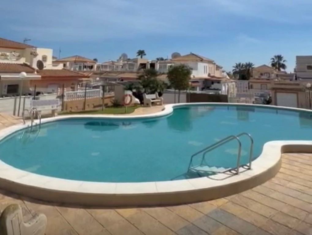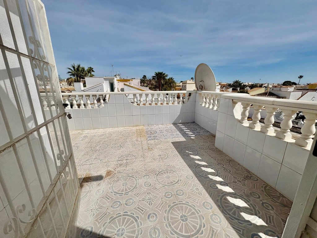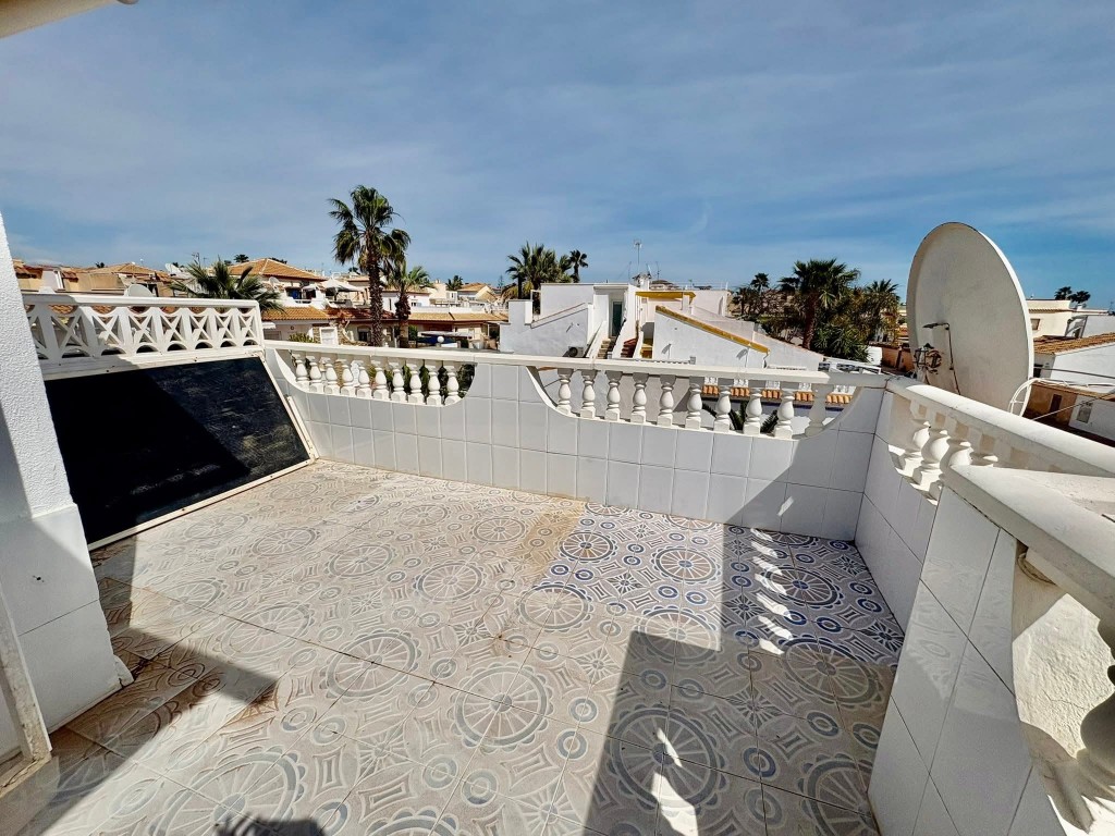 €229,950 EURO!! WE PRESENT TO YOU A 3 BEDROOM 2 BATHROOM SOUTH FACING QUAD VILLA WITH PRIVATE POOL, PATIO GARDEN, SUN TERRACES, ROOF TERRACE AND GARAGE, AS WELL AS ACCESS TO A COMMUNITY POOL, SITUATED IN THE POPULAR AREA OF LA FLORIDA, ORIHUELA COSTA .This spacious property offers fantastic outdoor living with a large garden, pergolas for shade and multiple terraces to enjoy the sunshine, making it ideal for permanent living, holidays or rental investment. Inside, the home features a bright living room, open plan kitchen with appliances and breakfast bar, two double bedrooms with fitted wardrobes and a shower room on the ground floor, plus a master bedroom upstairs with fitted wardrobes, en-suite and access to a private roof terrace. Additional benefits include air conditioning, storage shed and a garage. Perfectly located just a 5 minute walk to local shops, bars, restaurants and Consum supermarket, less than a 10 minute walk to the popular Emerald Isle and Playa Flamenca Saturday market, a 25 minute walk to La Zenia Boulevard, and only an 8 minute drive to the beautiful sandy beaches. Villamartin Plaza and golf course are just 10 minutes away. Community fee €360 pa, Suma €180 pa. Only a 45 minute drive from Alicante Airport. Book your viewing today with Wolf Whelan Homes.