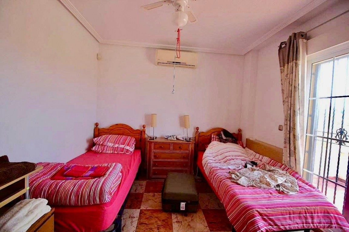€205,000 EURO!! WE PRESENT TO YOU A LOVELY FULLY FURNISHED SOUTH EAST FACING 2 BEDROOM 2 BATHROOM QUAD VILLA WITH LARGE PATIO GARDEN, ROOF SOLARIUM WITH STUNNING VIEWS, DRIVEWAY AND A COMMUNITY POOL TO ENJOY, SITUATED IN LOMAS DE CABO ROIG, ORIHUELA COSTA. This beautiful home offers plenty of outdoor space with a sunny south east facing patio garden, breakfast terrace and a sun drenched roof solarium with lovely views over the greenery. Inside, the property features a spacious living room, fully equipped kitchen with appliances, air conditioning and ceiling fans throughout, a twin bedroom with fitted wardrobes, a bathroom on the ground floor, and a master bedroom with fitted wardrobes. Additional benefits include storage space, private driveway and access to a well-maintained ...